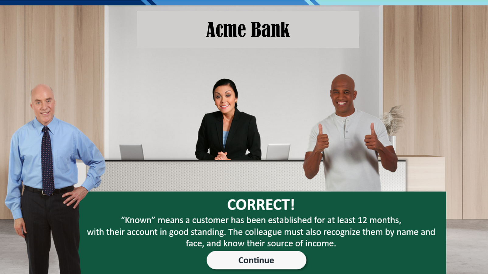 Design and development of scenario-based learning focused on customer authentication, informed directly by learner performance data. Instructional decisions were guided by instructor-identified error patterns and concepts learners consistently struggled to apply in real-world situations.